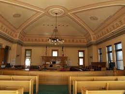 The third floor has three courtrooms. Since there was no trial scheduled in Courtroom 300, the door was open and they were able to peek in. They saw that the courtroom has a huge vaulted ceiling. (photo) It was half-again taller than the room itself. Parker correctly estimated that the vaulted ceiling must take up a good portion of the fourth floor; in what would otherwise be the attic. They looked around and thought they saw the room that the old stairs used to come up into, but they were not sure.