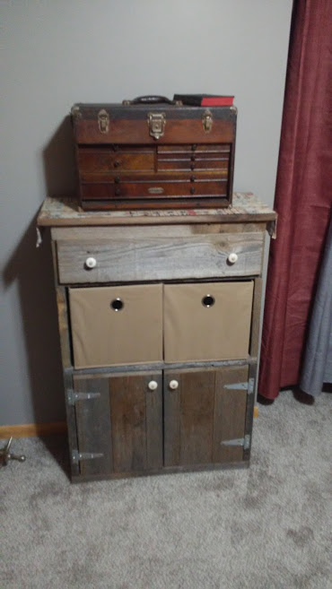 (the cabinet was made with old barn boards and discarded privacy fencing).